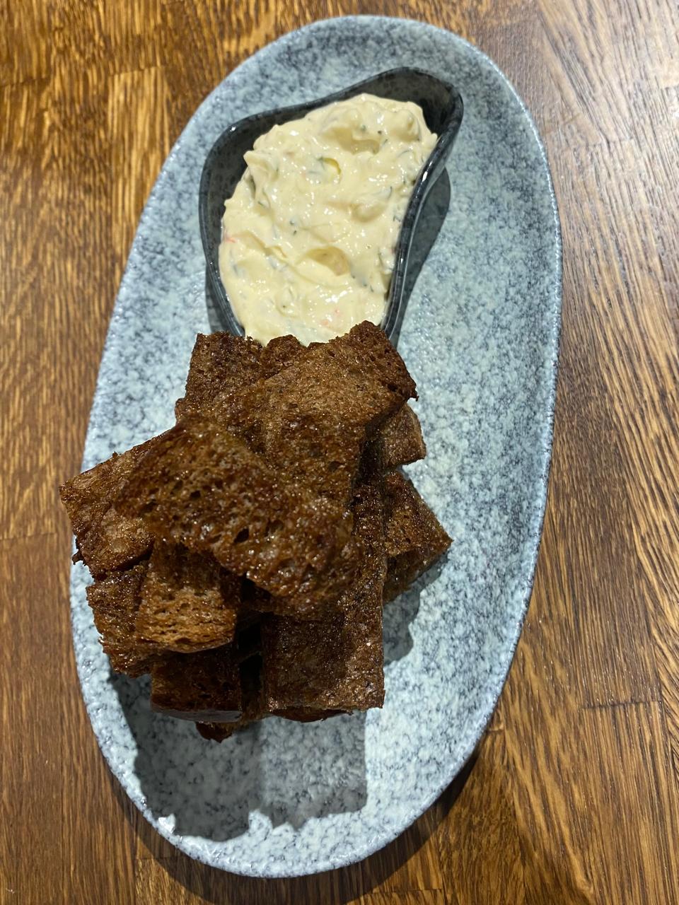 Гренки к пиву с соусом из раковых шеек