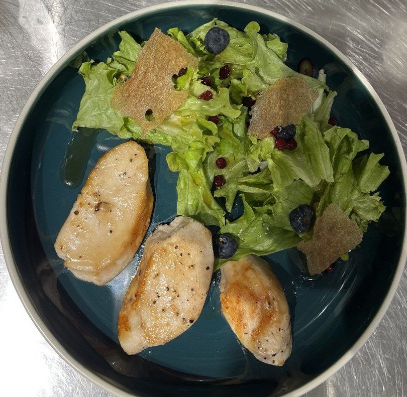 Куриная грудка с салатом и морошковым сиропо...