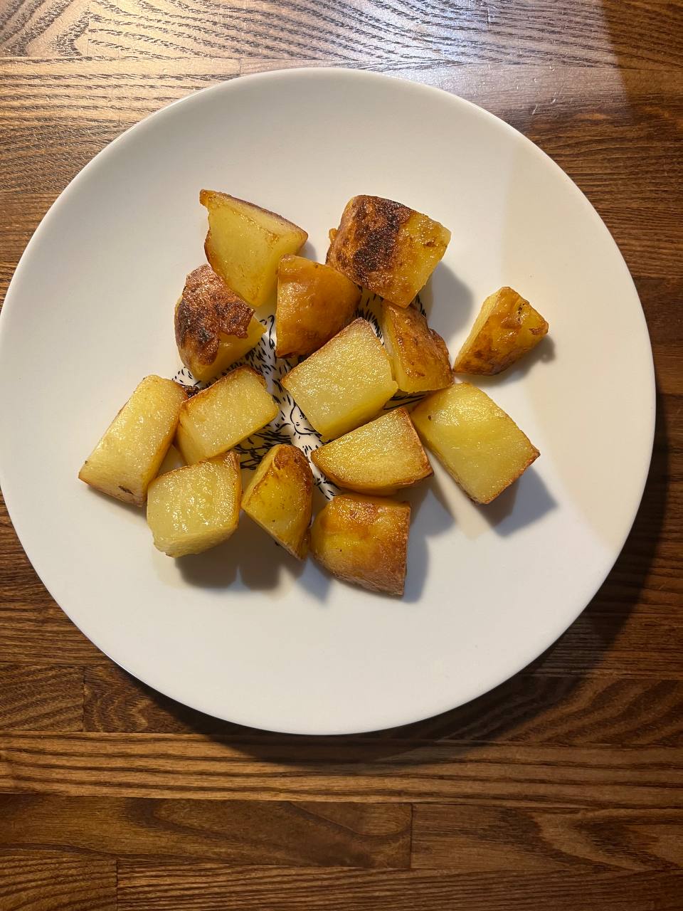 Молодой запеченный картофель обжаривается до хрустящей золотистой корочки